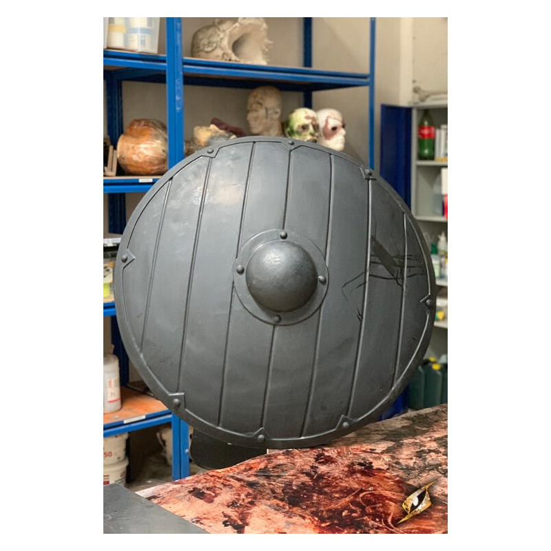 Epic Armourys Viking Shield är en 80 cm rund latexsköld inspirerad av tidiga vikingar och saxare från tiden före 900-talet. Med både en trä- och slät texturerad framsida och en järnlackerad finish kommer denna sköld garanterat att imponera på dina medkrigare på slagfältet i kombination med en vikingayxa. Dess lätt konvexa form och järnbossen på framsidan ger en fördel i strid. Den enkla trästrukturen på skölden är både enkel och erbjuder en utmärkt duk för att skapa dina egna anpassade insignier och emblem.