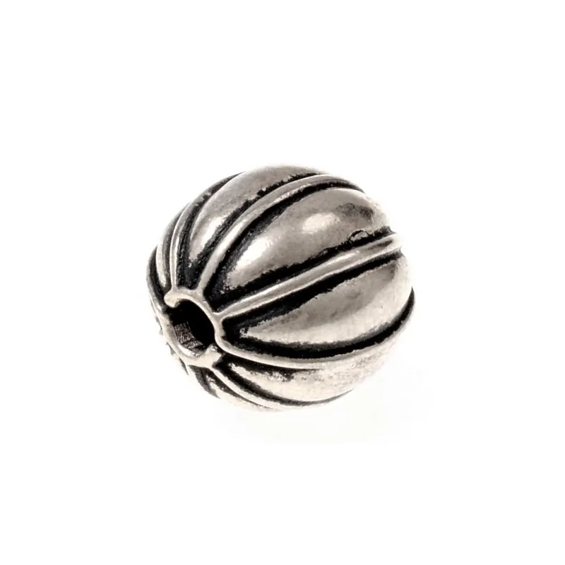Denna replika av en vikingatida pärla är tillverkad baserad på ett historiskt fynd från 800-900-talet, som tillverkades med en avancerad granuleringsteknik . I vikingatida granulerade pärlor löddes små sfärer och fina trådar fast på pärlan i invecklad detalj. Denna replika är dock gjuten helt i ett stycke, vilket gör att den delikata designen kan visas upp vackert.