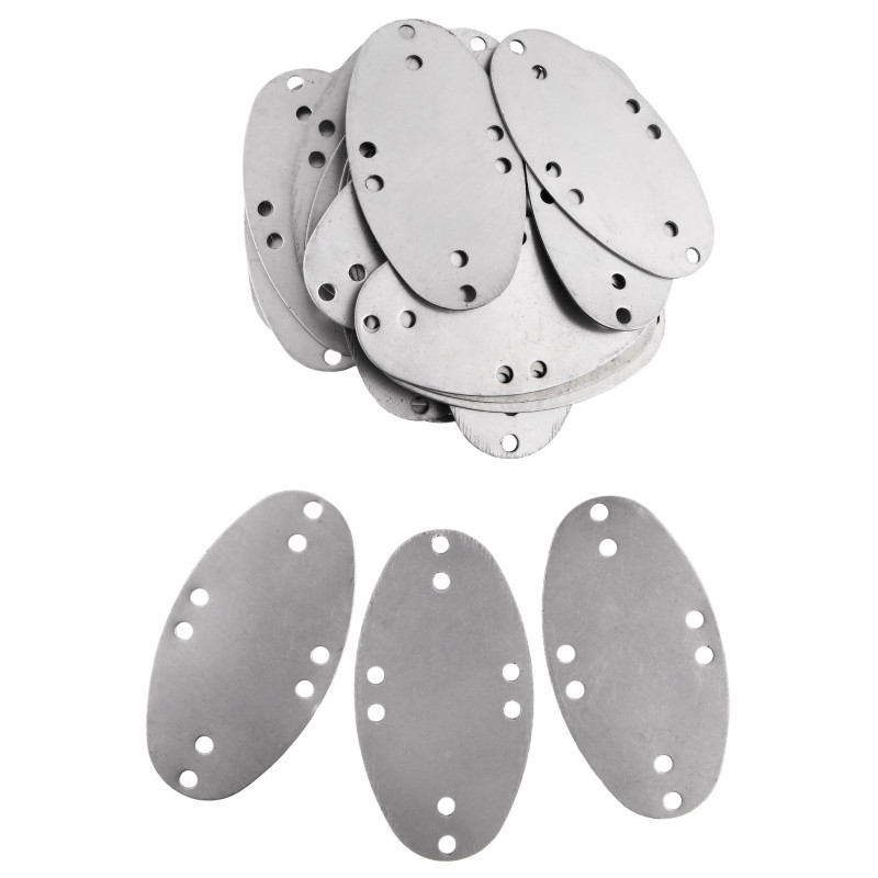 Här erbjuder vi dig en uppsättning med 25 stålplattor för självmontering av ditt eget lamellpansar eller skalpansar. Varje platta har åtta hål.