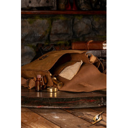 Traveler Axelväska är en enkel, robust väska för vardagsbruk vid lajvspel, festivaler eller reenactment. Den är tillverkad av oljigt pull-up-läder för ett distinkt utseende och känsla – tufft, diskret och förberett för åratal av hård användning.